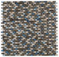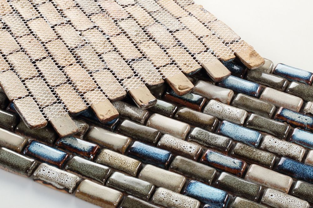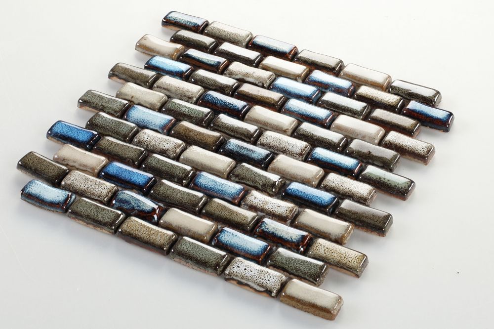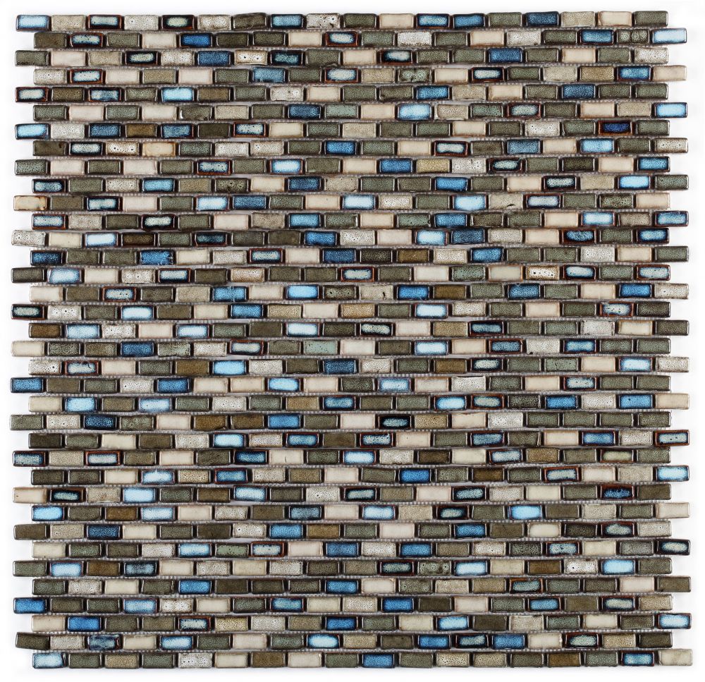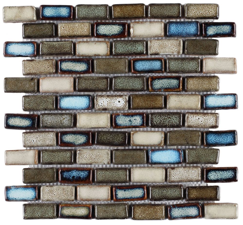 1x2" Handmade ivory, brownish green and Sunburst blue porcelain mosaic