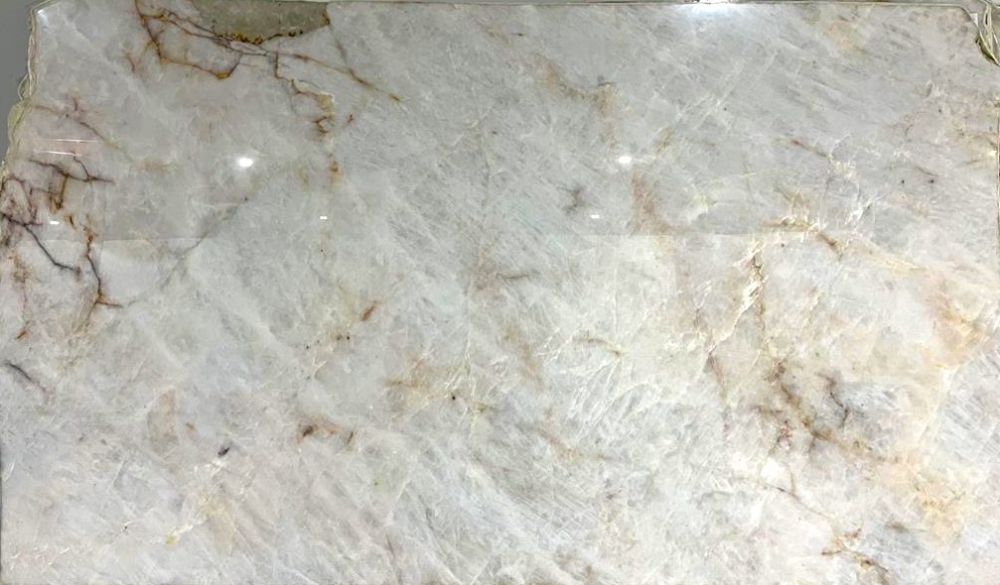 Cristallo/ Cristallus quartzite is a white or light gray stone with translucent qualities and fine veining in cream, gold, or beige.