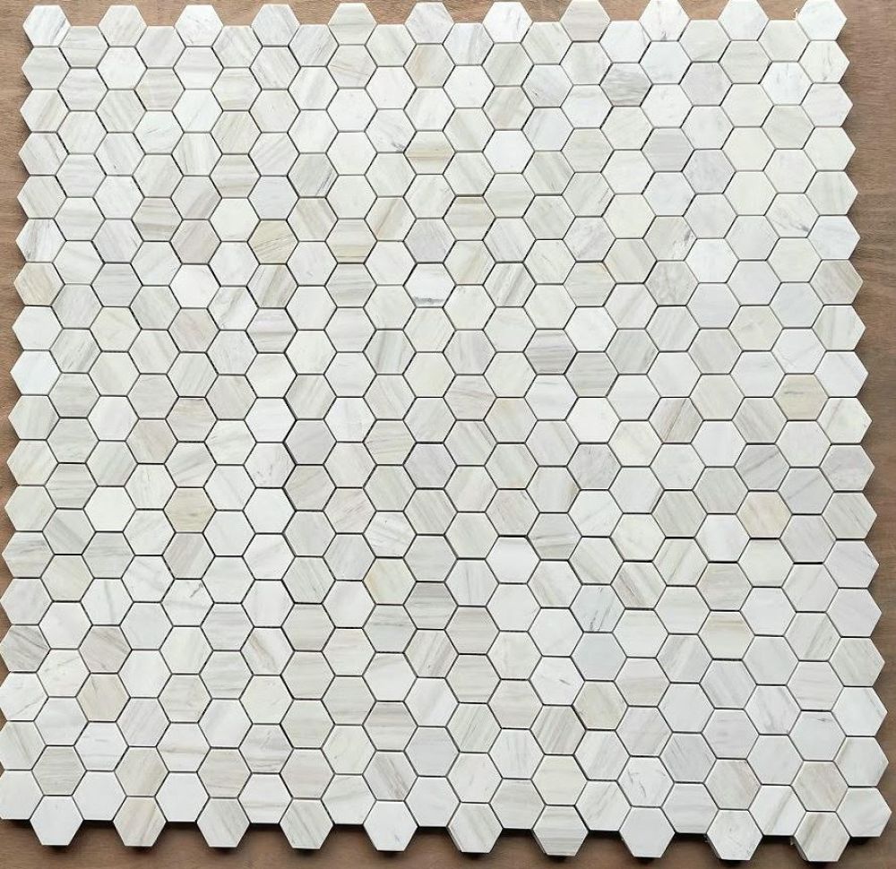 Hexagon Wooden White Honed 2 x 2: White Eurasian Wood marble in 2x2 hexagon shape.