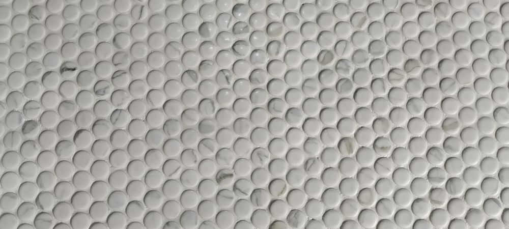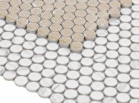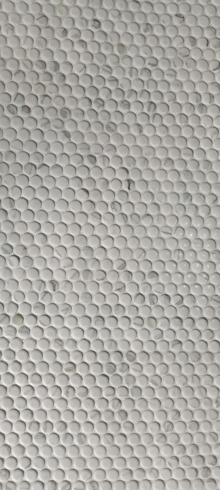 Hulu Collection: Penny Round Statuario Matte 11.5x12.25 - Porcelain mosaic in penny-sized pieces.