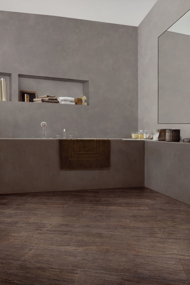 This Selection Oak Black 6x48 porcelain tile comes in a matte finish.
