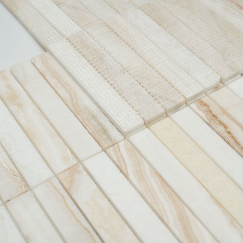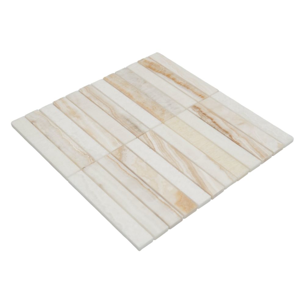 Slot Onyx Ivory 11.75 x 11.75, Straight Grain White Jade Onyx.